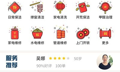 小时工、长期工、住家保姆、月嫂、育儿嫂、家务员、居家陪护员等一站式服务平台。其对家庭生活劳务需求或优化家庭赖以运转的社区环境,对整个家庭运作和家庭发展具有直接、重要的公共影响,除家政服务外还延伸至家电维修、管道疏通、各类帮工、病患陪护、养老助残、医疗保健、育婴师等专业服务项目。