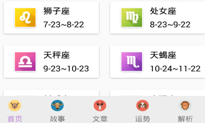 星座运势:今日运势、明日运势、本周运势、本月运势、整体运势、财富运势、爱情运势、事业运势、桃花运势
