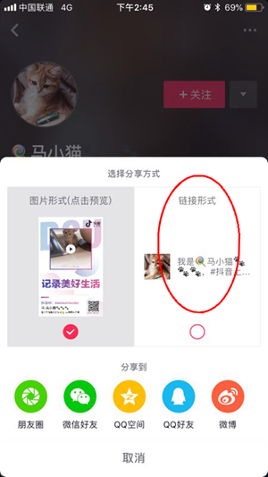 之后在分享方式中选择“链接形式”,那么大家就可以在获取一个个人名片的链接了哦!