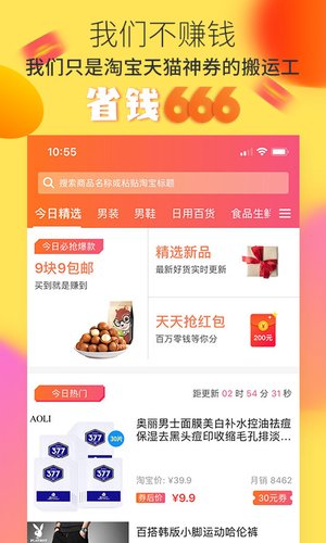 这次小编要为喜欢网购的朋友带来一款非常不错的优惠购物软件——省钱666,本次提供安卓版下载。省钱666为大家提供了丰富的网购电商平台优惠券,大家领取后结算时就可以直接使用立减,非常划算!新用户注册还能畅享红包好礼,快来下载使用吧!