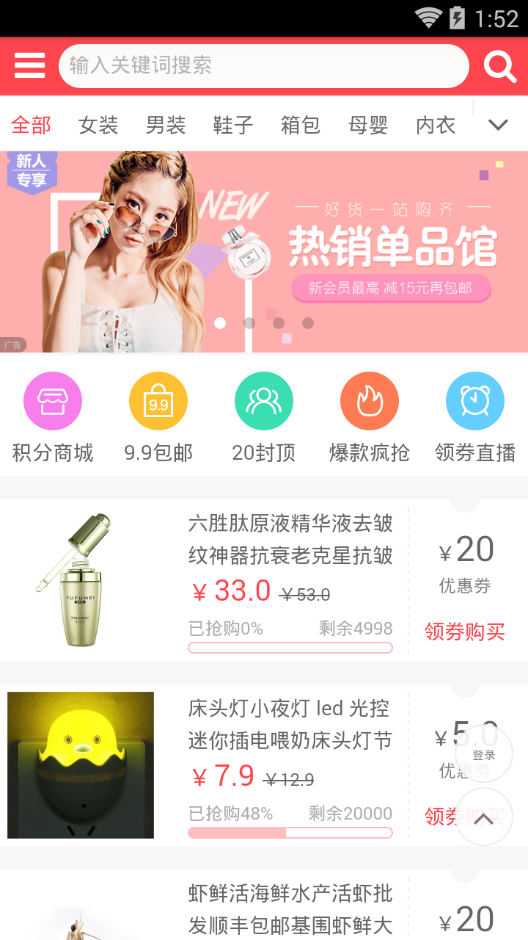 上亿品优汇,让省钱变的如此简单!亿品优汇每日为您推荐高性价比,真正划算,特价打折促销商品。更有大牌劲爆折扣抢不停!内部优惠券折扣,九块九包邮,十九块九包邮,一元秒杀,0.1折限时抢购,积分兑换等福利活动,不容错过!是千万购物达人、辣妈、学生族、剁手党们手机购物的省钱神器!