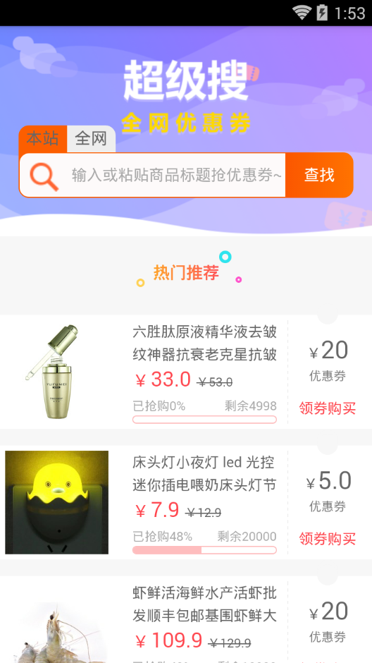 【快】提供搜券功能,优惠券一键查询,直接下单,你想买的刚好都有券!