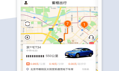 蜜橙出行通过移动客户端随时随地为客户提供出行解决方案,实现了用户的线上预订、取消预订、用车、还车等各项服务,极大的方便了用户出行。同时从用户体验出发,提供0元停车区,返还停车费用等服务。