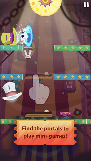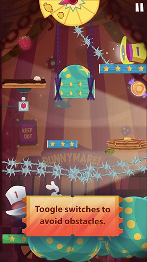 玩家需要控制兔子跳跃马戏团中各个平台,收集到丰富道具抵达终点,挑战重重关卡后就能够获得游戏胜利,成功逃出马戏团!