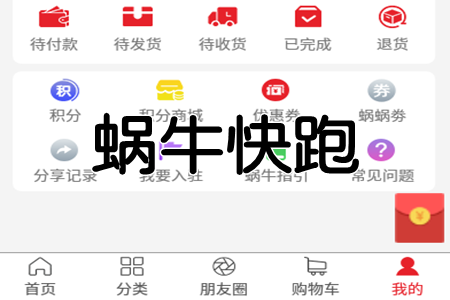 集购物、交友、聊天、社交与一身的平台类综合商城;其中功能以在线购物为主,交友、聊天、社交为辅,增加用户粘度;主要消费群体是20岁-50岁之间,职业不限。蜗牛快跑-重建消费链接,打造民族品牌。