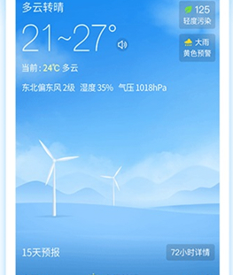 15日天气预报可以提前获得未来几天天气状况,空气质量,用户可以通过15日天气预报来知晓天气情况,用户可以酌情携带雨伞或者选择出行方式,用户出门旅游可以通过15日天气预报选择出行时间段,它运用先进的技术实时提供给用户权威的信息、