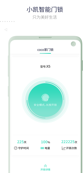 小凯智能是一款实用的软件,说有人都会有忘带钥匙的处境,这款软件可以在忘带钥匙的情况下通过蓝牙打开门,最重要的是,他会在陌生人试图开启家里的门锁时对你进行一个报警信息,可以统一管理指纹,密码等重要信息