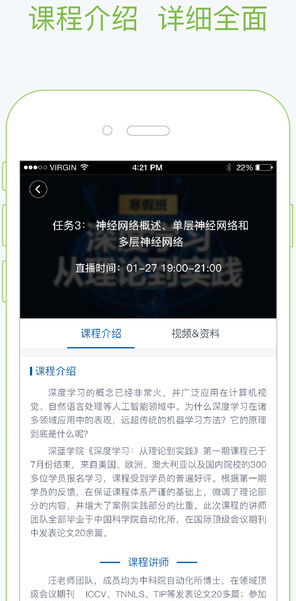 深蓝学院APP是一款可以专业培训、提高专业技能的人工智能在线教育平台。可以在线直播课程,支持上课举手发言和老师进行线上互动;拥有海量题库,大数据的培养体系,在手机上也可以进行刷题。该软件可以帮助你快速查找到你想要的学习的课程,随时随地的进行学习