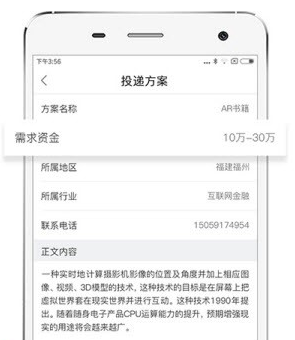 2、项目动态变化:项目动其实就像是一个公告栏,告诉用户哪一个投资人反馈或者是约谈哪个项目,公开透明,让创业者可以通过项目动态了解投资人反馈的程度。创业者可以在平台上创建项目,上传商业计划书,或者是一键向投资人投递项目。