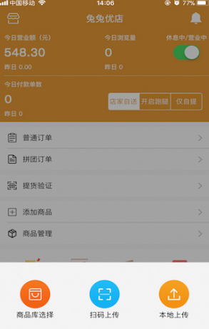 2.帮助小店10分钟拥有自己的线上店铺,同时让用户享受“在家下单,店主送货上门”,“店内扫码自主购物”,“门店消费线上支付”,“店主设置拼团,用户自主开团”的四大升级体验功能,