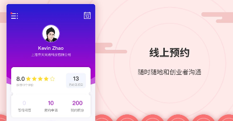用户可以给匹配投资人\专家投递项目,投资人\专家给出在线约见时间,用户进行时间确认。