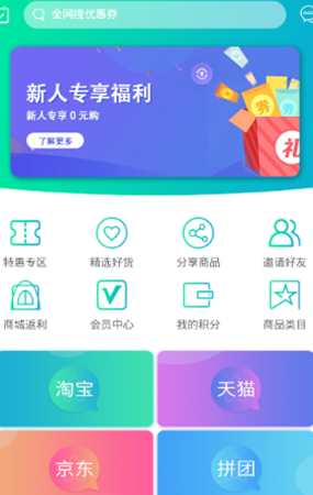 天猫百货,京东精品,聚划算,天猫超市,拼多多商城返利,唯品会,蘑菇街,蜜芽,去哪儿旅行,分类商城,商城返利等返利省钱入口。