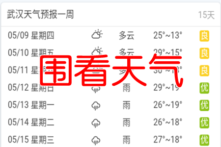提供全国城市、区县、乡镇一周内天气预报查询,通过对本地天气查询可以了解到未来7天、15天天气预报的详细情况,包括温度、降雨以及空气质量pm2.5的24小时天气实时数据。