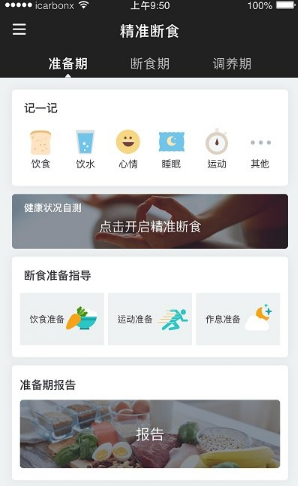 精准断食拥有一站式健康应用平台,应用主题涵盖营养、运动、美容、健康四大板块。从中挑选感兴趣的应用产品,你便能获得专项健康检测及指导建议。
