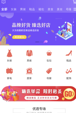 2、线上商品种类是非常齐全的,基本上都包括了,时尚女装、精品男装、精选鞋品、时尚箱包等等应有尽有。