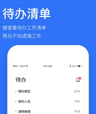 支持待办提醒、客源跟进、掌上租控、预定签约、入住退房、移动验房、移动审批、财务管理等,随时随地连接租客;