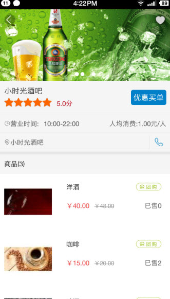 2选择自己喜欢的的商家或景点,可以查看商家的基本信息,还可以了解到最近的用户评价以及商家的实际照片