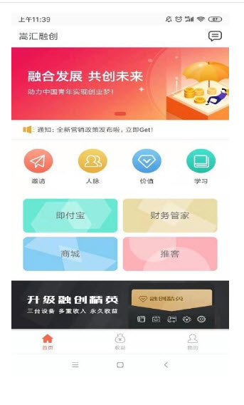 嵩汇融创APP是一款专为创业群体开发的服务软件,致力于向用户推荐可靠的人脉资源、推送有效的学习资源、展示科学的创业价值观,帮助用户将自己的创业做的越来越好;