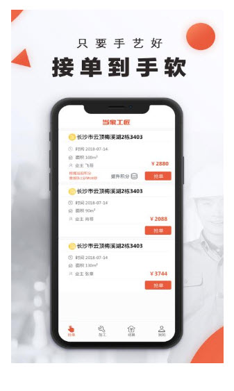 当家工匠是一款专为装修工匠提供业务服务的平台,平台汇集大量的业主装修需求,让工匠师傅可以自由进行报价,进行抢单,各种优质的订单,让你随时随地接单到手软,保证了业务量,让收入更有保障