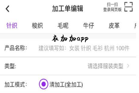衣加加app是一款为服装行业打造的交易服务平台,用户在平台上可以进行服装采购与销售,从生产到交易服装行业的所有环节都可以满足其需求,能够采购原料,定制服装,服装厂还能查看订单详情并进行管理。