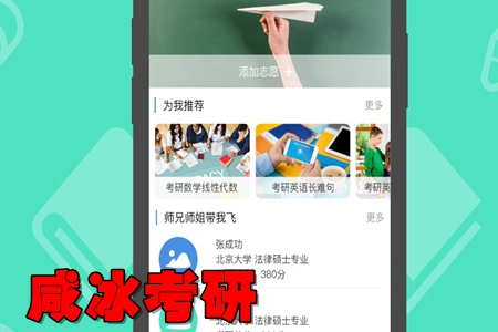 咸冰考研,旨在为广大考研学生提供最丰富的专业课辅导资源,师兄师姐身份严格认证,帮助考生一键找到目标院校师兄师姐优质资源。没有考研机构赚差价,让考生少花一半以上的费用就能获得师兄师姐的一对一辅导,师兄师姐也能拿到自己全部课时费,彻底告别考研机构的抽成扣费。咸冰考研支持一对多、一对一的在线音视频直播,并配有回放功能,并向大家免费提供海量考研真题、复习资料在线浏览。