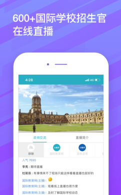 2、还有国际招考官在线直播,可以在线咨询交流。