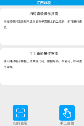 扫描江西财政票据查验APP二维码,下载安卓版查验APP,进行手工查验或扫码查验 。