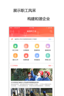 电力工会app是一款专门服务国家电网的掌上职工服务平台,为职工们提供了教育,资讯,法律法规,交流,活动等一系列的服务功能,致力于展现职工风采,为他们提供最全面的生活服务!