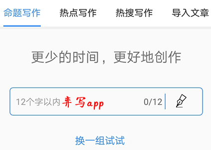弈写app是一个十分专业的写作辅助软件,这款软件提供了热点写作、命题写作、热搜榜写作、导入写作等四种方式,能够基于主题快速的生成文章,同时还可以通过多维度主题词来匹配参考素材,让你写作变得更加简单!