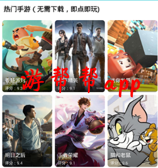 游帮帮,一个全民都在用的精品云游戏平台。低配手机玩不了吃鸡怎么办?就用游帮帮.低配手机玩不了王者怎么办?就用游帮帮.为什么用游帮帮?因为它是低配手机拯救者!游帮帮是致力于帮助低配手机,解决玩大型手游遇到的卡顿、安装失败等问题的一款免费云游戏产品。汇集了丰富的精品游戏和新游资源,手机型号低内存不够也可以利用云技术轻松畅玩大型手游,同时还有详细的精彩游戏视频和攻略哦!