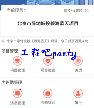 首版主要给项目管理提供了项目管理、项目检查、项目通知、考勤签到、项目审批、机械设备管理、测量检测仪器管理、晴雨表及黄道吉日查询等功能。
