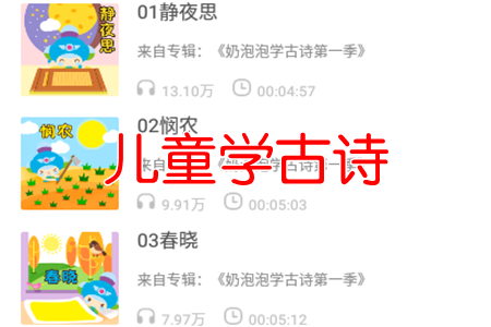精选优质古诗、故事,通过绘声绘色的声音演出给孩子一场听觉盛宴,不用出门,一部手机就可以让孩子听世界,幽默搞笑的内容让故事不再单调,代入式的情景教育让儿童学会知识。