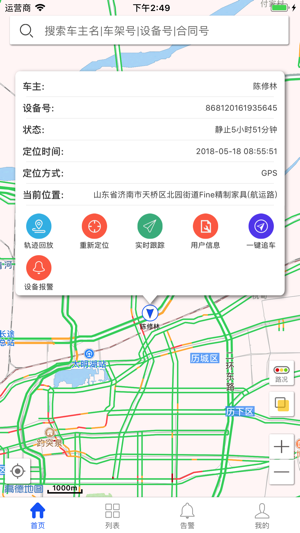 查看车辆:账户下所有车辆标注在地图上;