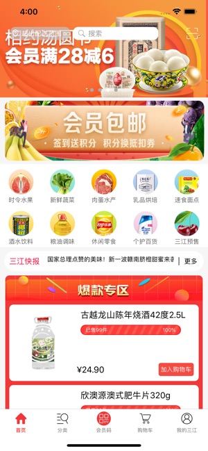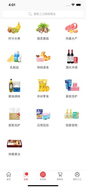 三江购物APP含括了三江超市最畅销的千万商品,访客可以通过APP首页、分类、搜索到自己需要的商品。并且支持货到付款,三江会员也可以选择三江配送、门店自提等多种配送方式。