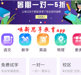 唤新思享教育app让你不用出门,在家也能上培训班啦!一款专为大众打造的寒暑假一对一教学辅导平台,专注于语数外物理等全科辅导,致力于让每一位孩子都能够享受到个性化因材施教,从而实现轻松学习,快速提升,现在还有专门的试听课程,快来体验吧!