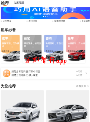万郡智行app安卓版:这是为用户们提供安全省心租车服务的APP,这里有更多不同测车型供大家去选择,按照相关的租车流程进行操作就可以了,该平台是经过安全认证的,大家租车的时候可以特别的放心!