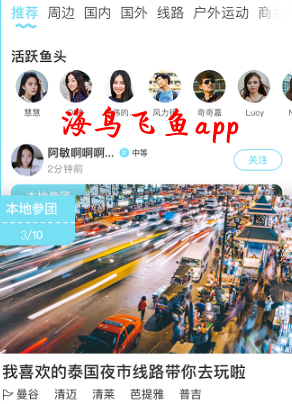 海鸟飞鱼app是一款旅行约伴、出行玩乐、活动组织首选APP!一个人旅行太无聊?不如约上社区好友,来一场说走就走的旅行,为你真实种草,将全世界好玩的推送给你,来海鸟飞鱼,约你组队,即刻出发!