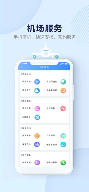 机场行APP,提供旅客行程自动导入、实时查询航班动态、手机值机、智能行程助手等出行工具,提供全国机场中转、航延、问询、导航、行李运输、机场交通、贵宾服务、快速安检、电瓶车、停车等全流程机场服务及机场餐饮、休闲、购物。