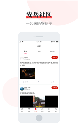 多姿多彩的安岳事、安岳圈“安岳融媒”APP的“安岳号”将横向融合安岳县各党政部门(单位)新媒体,纵向延伸至街道(乡镇)、社区,提供独立频道,最大限度展示全县各级各部门(单位)、乡镇(街道)工作举措和发展成就。商家企业及市民朋友也可以注册账号分享原创图文、小视频等本地优质资讯,一站式分享了解安岳大小事及生活信息,让你足不出户就能了解安岳大小事。