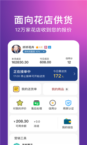 花伍鲜花批发交易平台供应商系统,花农销售鲜花的报价平台APP。
