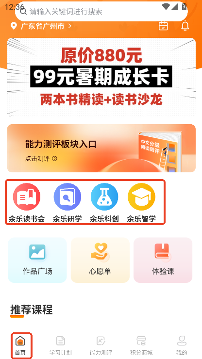 余乐读书app官方正式版下载是一款专为学生用户打造的在线阅读学习软件,涵盖读书会,研学,科创,智学多个领域,丰富的推荐课程为用户打造多样化的书籍选择。不仅能够提供学习能力测评,还能通过评测方案定制专属的学习计划。更有积分商城甄选好物,各类玩具,文具,日用,书籍随意兑换,满足不同用户的使用需求。