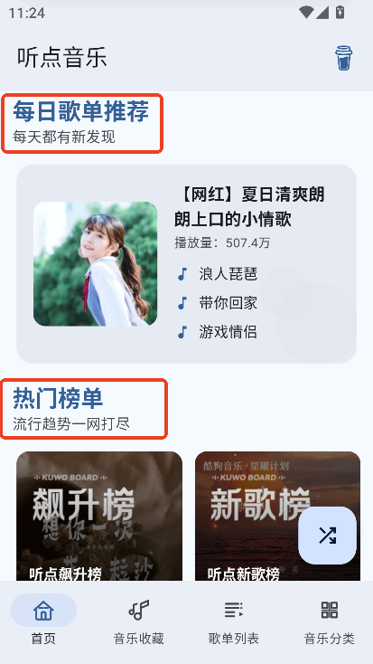智能推荐引擎:依托先进算法,根据用户的听歌历史、收藏偏好、播放时长等数据,深度剖析音乐口味,每日为用户量身定制专属歌单,源源不断地推送契合心意的新歌,拓宽音乐视野。