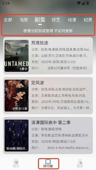 实时资源更新机制:紧跟影视行业动态,及时上架新出的电视剧、电影、综艺等内容,如《清潭国际高中第二季》保持周四五更新,让用户第一时间获取最新影视资源,不用等更太久。