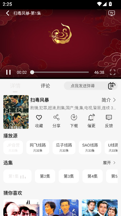 多播放源自由切换:播放视频时进入全屏模式,点击下方“播放源”选项,可在JP自营、人人线路、网飞线路等多种线路间切换,解决单一线路卡顿或失效问题,保障观看不中断。