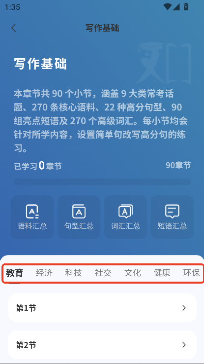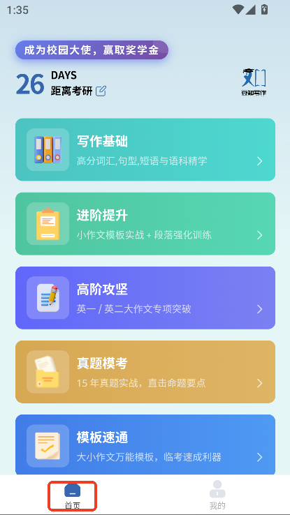 豆知写作app安卓版下载是一款专为考研学子打造的在线知识内容学习软件,包含写作基础,进阶提升,高阶弓箭,真题模考,模板速通,以及应试指南等多个学习内容。汇总语料,举行,词汇,短语内容,每个章节都有多样化的知识内容,还包含学后练习功能,帮助用户及时复习,养成良好的学习习惯。