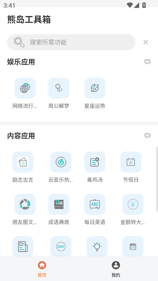 熊岛工具箱安卓版下载是一款超实用的多功能手机工具箱应用,里面装了好多常用工具,不管是社交、学习,还是办公、拓展知识,都能在这儿找到能用的功能,日常用到的小需求基本都能满足,你值得拥有。