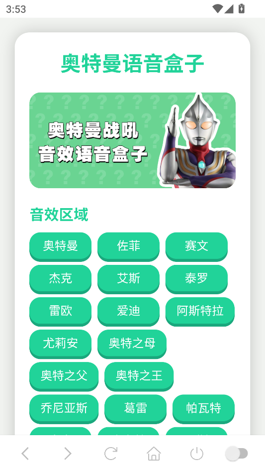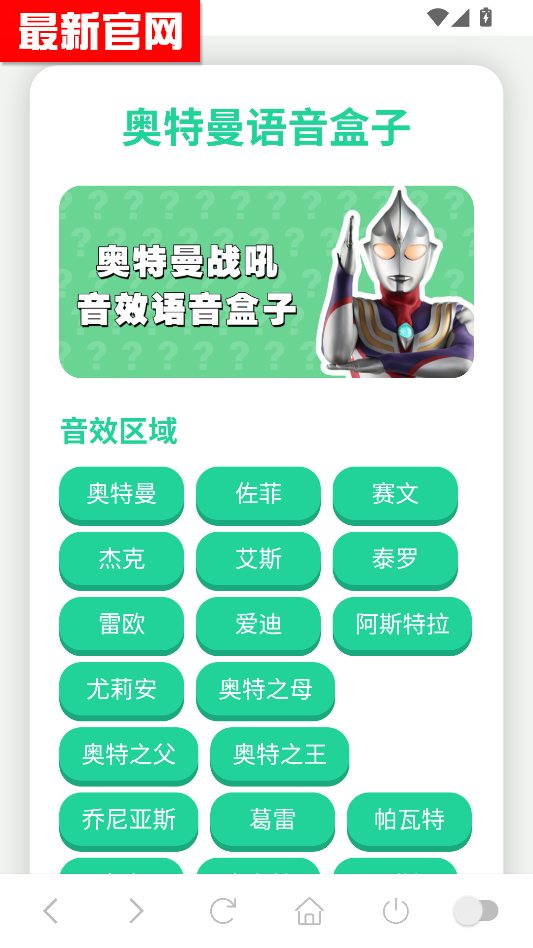它的操作特别简单,打开软件就是奥特曼列表,按名字找、按系列分都能快速定位。找到对应的奥特曼后,点击就能播放战吼声音,还能直接设置成手机铃声、闹钟声或者微信提示音。比如把迪迦的战吼设成闹钟,早上起床都像被奥特曼唤醒一样,超有仪式感,你也快来试试吧。