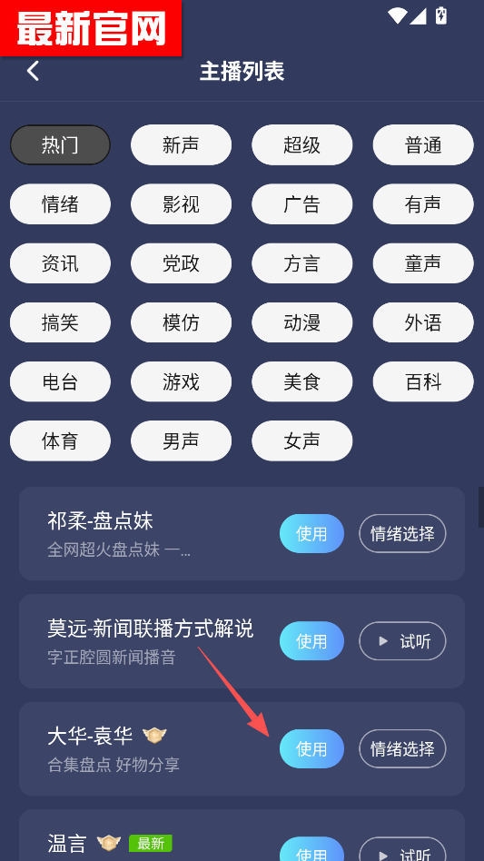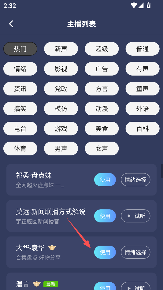 挑选其他主播的声线