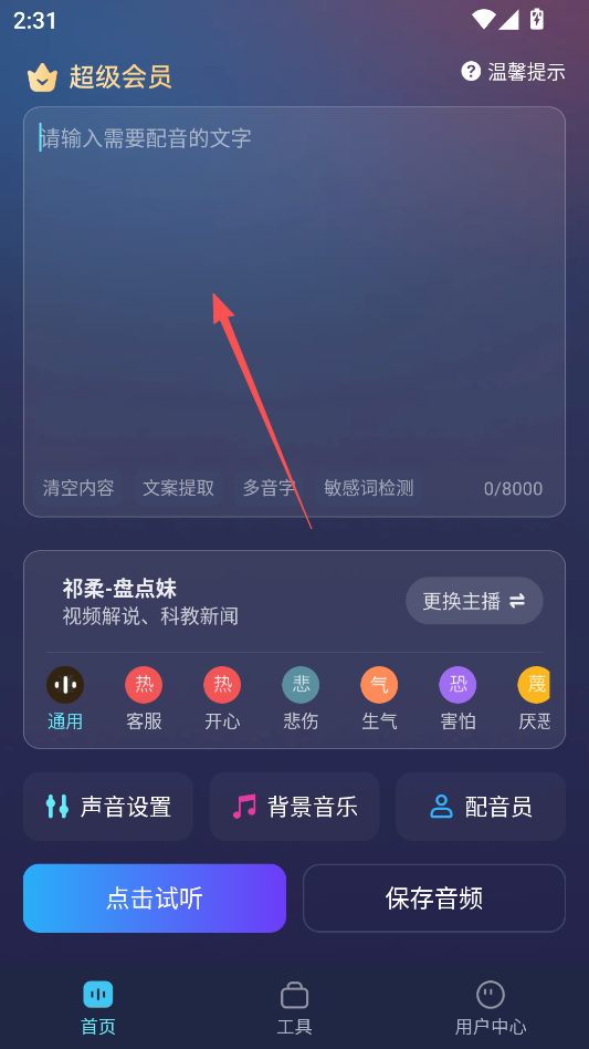 进入主页后可以直接输入你的文字文本