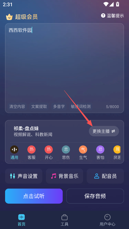 输入完文本可以点击更换主播